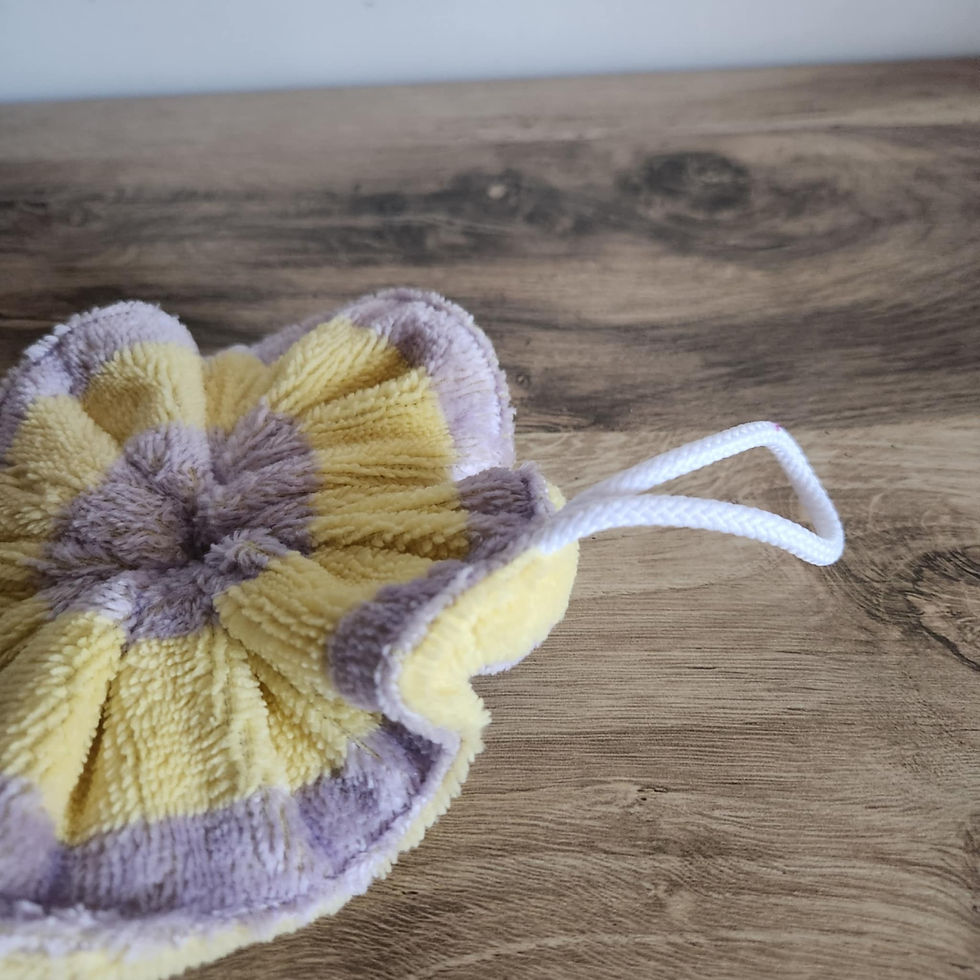 Fleur de douche rayé Parme et Jaune (1)